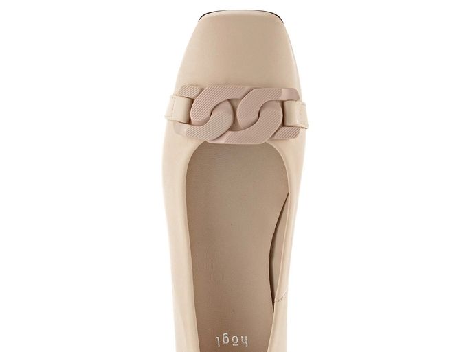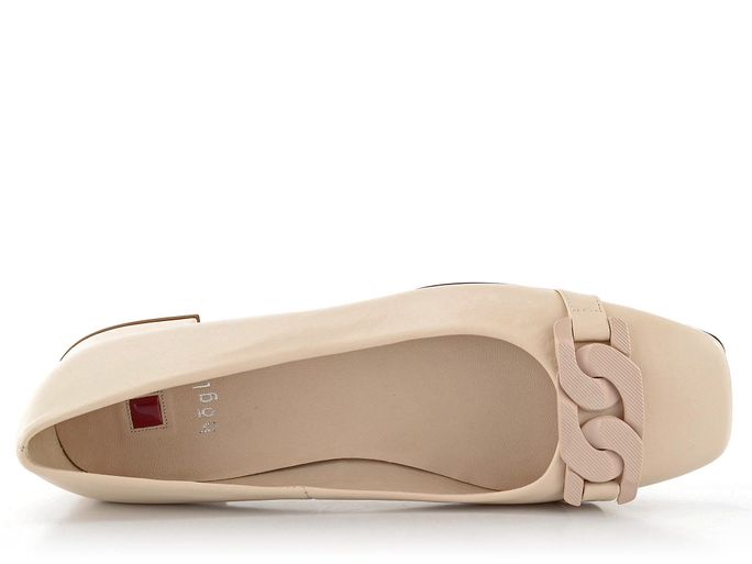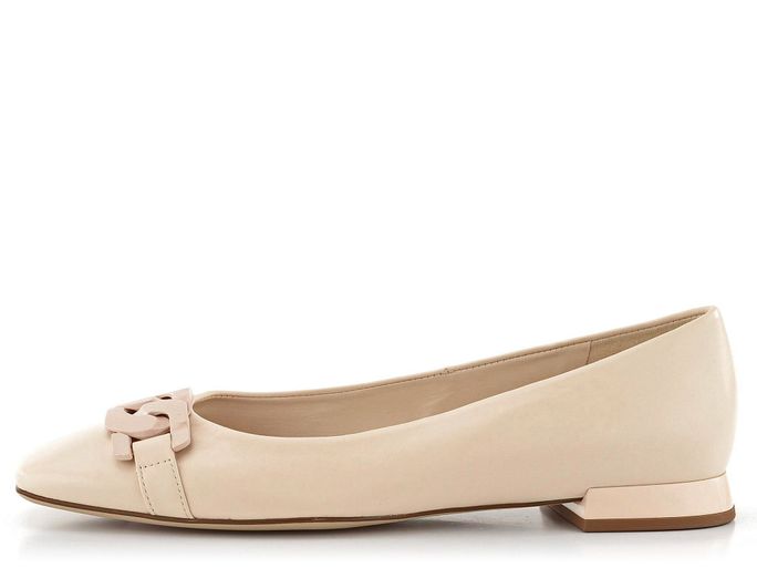 Luxusní dámské světlé baleríny s karé špičkou a módní kovovou sponou.