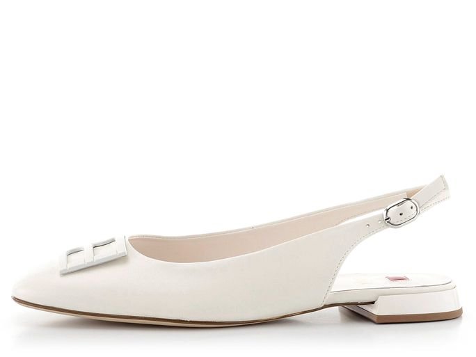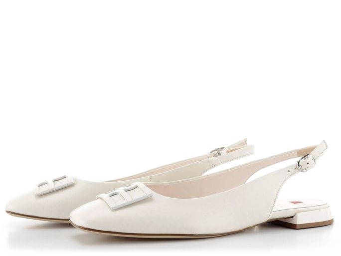 Elegantní dámské baleríny ve světle krémové barvě s karé špičkou a volnou patou.