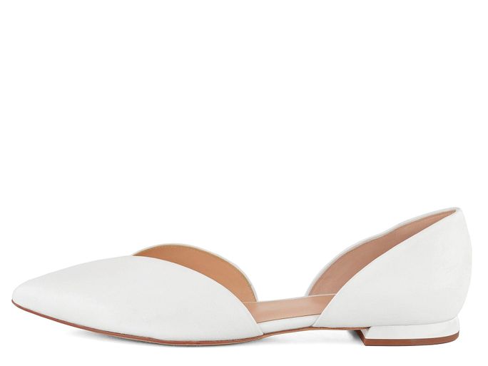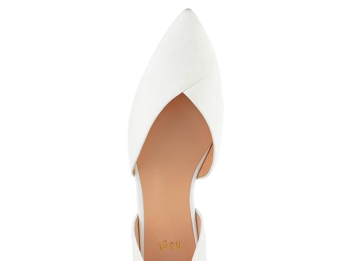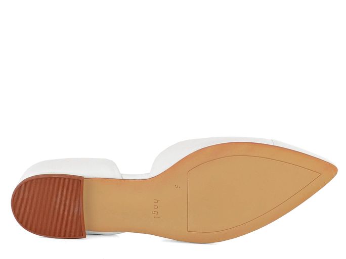 Luxusní dámské špičaté baleríny z hladké kůže v bílé barvě a na nízkém lakovaném podpatečku.