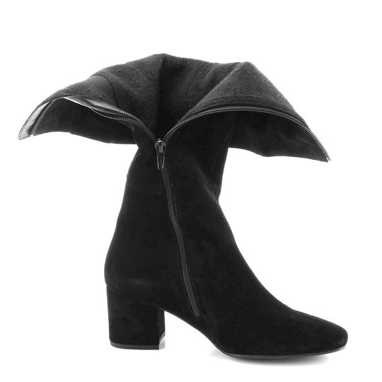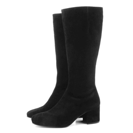 Dámské černé semišové kozačky s karé špičkou a vnitřní teplou podšívkou.