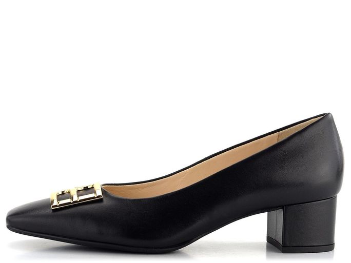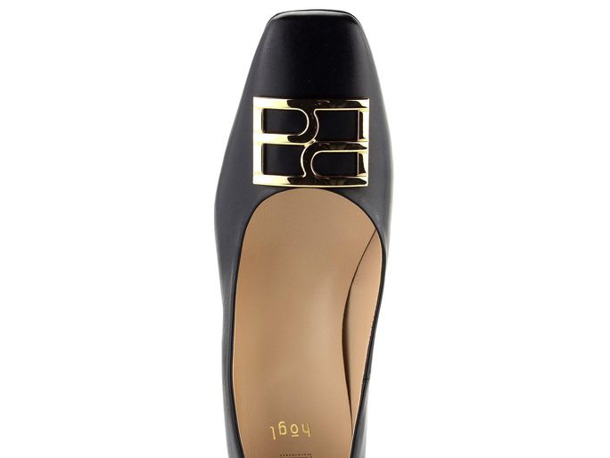 Elegantní černé lodičky od značky Högl jsou ideální volbou pro moderní ženu, která ocení kvalitu a styl. Tyto lodičky se pyšní karé špičkou a kovovou ozdobou ve zlaté barvě, což jim dodává jedinečný vzhled. Svršek i podšívka jsou vyrobeny z prémiové hladké kůže, což zajišťuje maximální komfort a odolnost. Díky měkké stélce a širokému potaženému podpatku vysokému 4,3 cm se budete cítit pohodlně po celý den. Hladká podešev a lepený výrobní způsob přispívají k celkové kvalitě a trvanlivosti bot. Tyto lodičky jsou ideální pro jaro a léto a skvěle se hodí do města, kanceláře i na formální příležitosti. Investujte do obuvi, která kombinuje eleganci s komfortem.