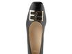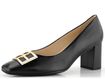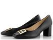 Luxusní dámské černé lodičky s módní karé špičkou, ozdobnou sponou a širokým podpatkem.