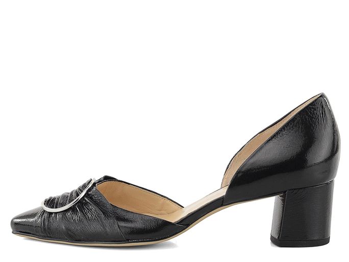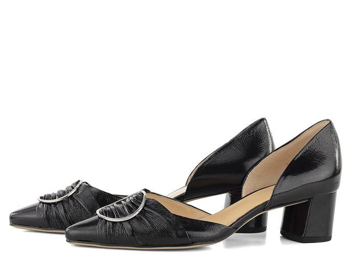 Luxusní krešlakové lodičky s elegantní špičkou, která je ozdobena řasením a kulatou sponou.
