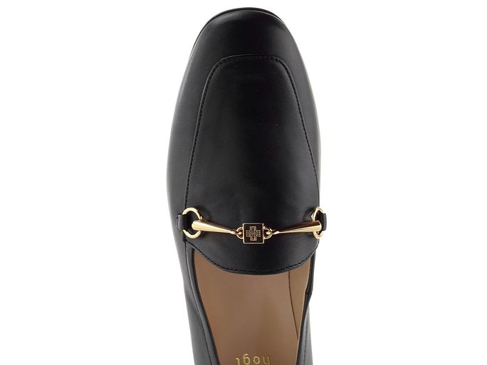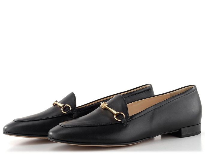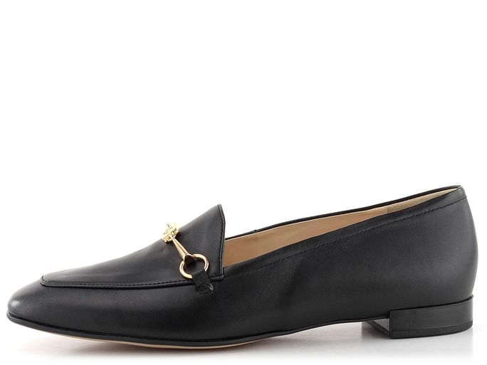 Elegantní černé mokasíny s kováním od značky Högl jsou ideální volbou pro podzimní a zimní sezónu. Tyto boty vynikají svým užším prozouvacím střihem s kulatou špičkou a jsou vyrobeny z jemné hladké kůže. Černá barva dodává mokasínám nadčasový vzhled, který je doplněn zlatou kovovou aplikací na nártu. Uvnitř najdete celokoženou podšívku s opatkem ze zabroušené kůže a měkčenou koženou stélku, která zajišťuje maximální komfort. Nízký široký podpatek o výšce 1,6 cm poskytuje stabilitu a pohodlí při každodenním nošení. Mokasíny jsou vyráběny lepeným způsobem, což zaručuje jejich dlouhou životnost. Tento model je součástí kolekce 2023/24 a je určen pro ženy, které hledají kvalitní a stylovou obuv pro každodenní nošení.