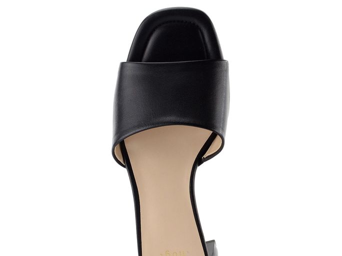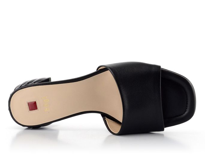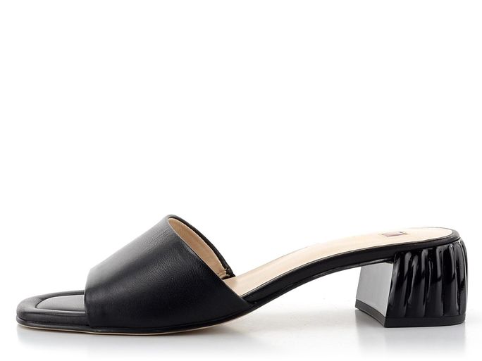 Dámské jednoduché kožené pantofle s originálním podpatkem.