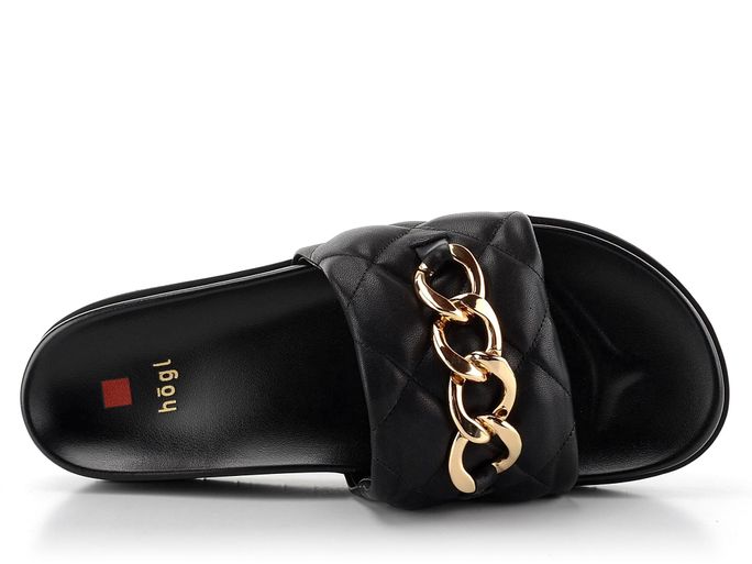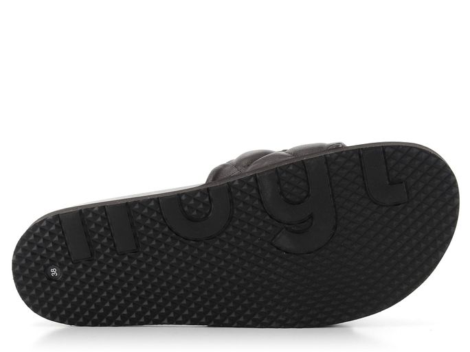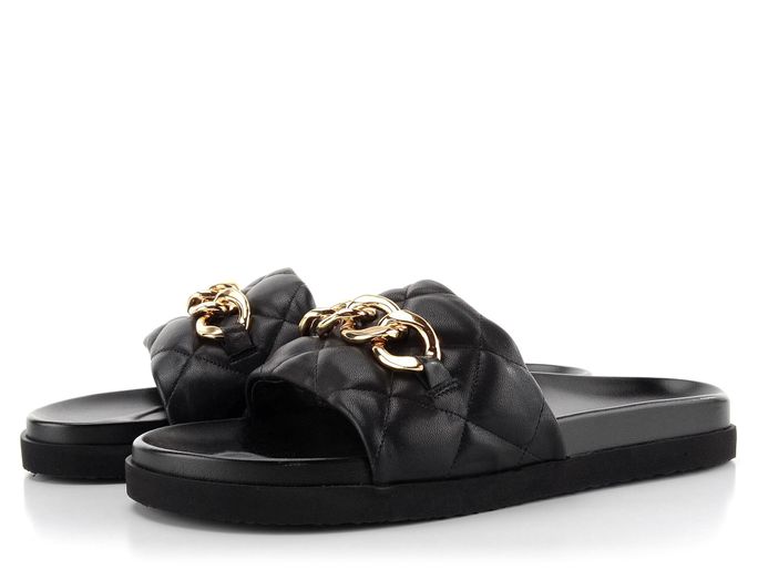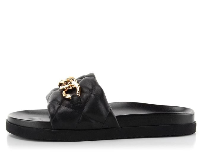 Dámské módní pantofle v černém provedení s prošíváním a tvarovanou stélkou.