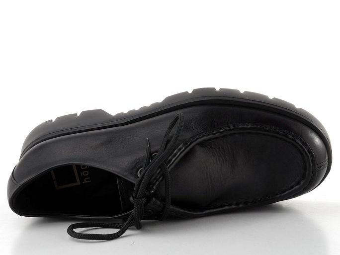 Spojení elegance a stylu přinášíte s těmito luxusními koženými polobotkami od rakouské značky Högl. Tyto dámské polobotky jsou ideální volbou pro jarní a letní sezónu, kdy oceníte jejich prostorný kulatý střih a šněrování na dvě očka s kulatými tkaničkami. Svršek z hladké kůže v klasické černé barvě doplňuje ozdobný vyvýšený šev na špičce, což dodává botám na atraktivitě.