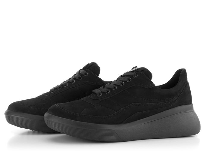 Sportovní městské polobotky na platformě, z luxusní nubukové kůže v černé barvě.