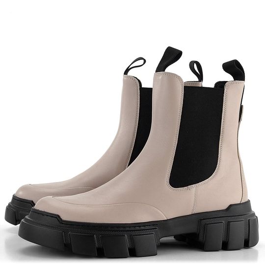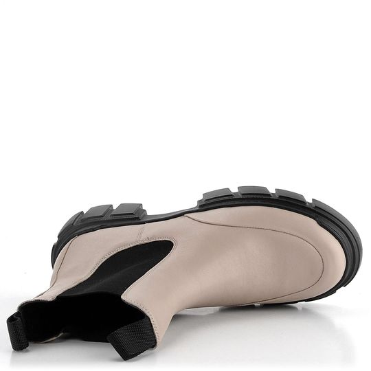 Dámský kožený chelsea kotník na vyšší podešvi s hrubým vzorkem.