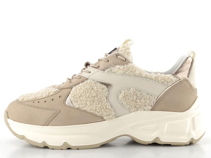 Högl dámské tenisky s beránkem cashmere/creme 0-105348-1412 představují exkluzivní spojení elegance a pohodlí. Tento model od značky Högl je vyroben z kvalitní kombinace nubukové, hladké a metalické kůže, což mu dodává jedinečný vzhled. Béžové a smetanové odstíny jsou harmonicky sladěny, a metalické doplňky ve světle zlaté barvě podtrhují jeho luxusní charakter.