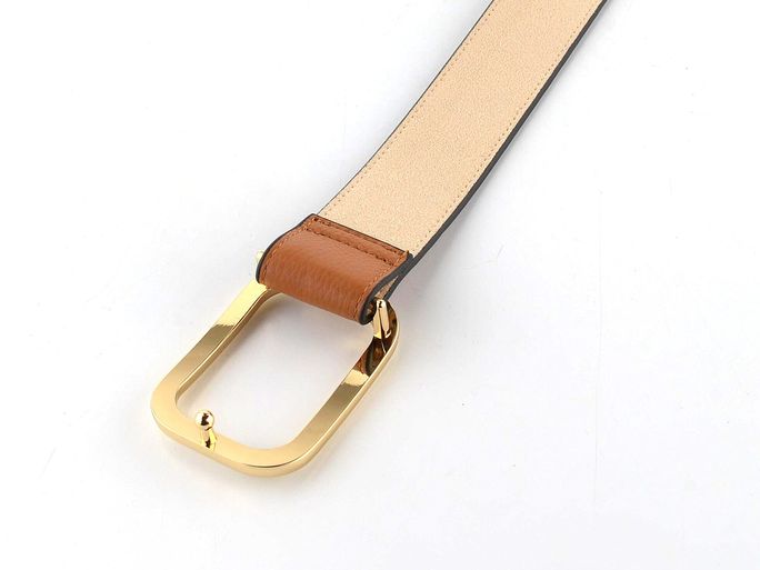 Luxusní dámský opasek ze strukturované kůže v koňakově hnědé barvě s krásnou leštěnou sponou.