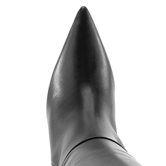 Dámské kozačky od značky Högl jsou ideální volbou pro podzimní a zimní sezónu. Tyto elegantní kozačky se pyšní prémiovým svrškem z hladké kůže a střih do úzké špičky podtrhuje ženský půvab. Černá barva dodává univerzálnost a snadno je sladíte s jakýmkoliv outfitem. Díky postrannímu zipu po celé délce je obouvání snadné a rychlé. Skrytá pružná vsadka na vnitřní straně zajišťuje optimální padnutí na lýtko. Vnitřní podšívka z broušené textilie a kožené lemy poskytují maximální pohodlí. Kozačky mají vysoký jehlový podpatek o výšce 8,2 cm, což dodává elegantní vzhled a zároveň stabilitu díky hladké kožené podešvi s latexovým nášlapem. Horní obvod kozačky měří 37,5 cm a výška kozaček je 38 cm. Tyto kozačky jsou skvělou volbou pro každou ženu, která hledá stylovou a kvalitní obuv pro chladnější dny.