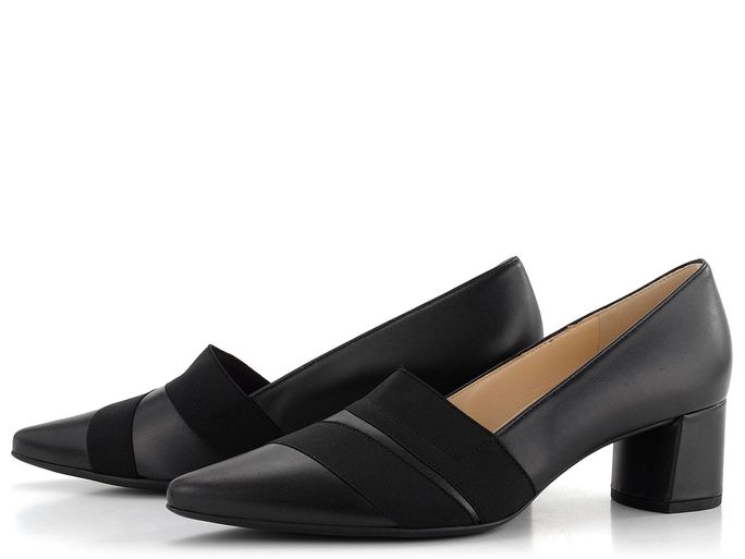Luxusní lodičky od značky Högl, které přinášejí eleganci a pohodlí v jednom. Tyto lodičky v módním špičatém střihu jsou ideální volbou pro ženy s užším až standardním typem chodidla. Svršek z jemné a hladké kůže v kombinaci s textilní pruženkou zajišťuje, že obuv skvěle padne a přizpůsobí se vašemu nártu. Černá barva dodává lodičkám univerzální eleganci, která se hodí k jakémukoliv outfitu. Uvnitř najdete celokoženou podšívku a velmi pohodlnou a měkkou stélku, která zaručuje komfort po celý den. Hladká podešev bez vzorku a komfortní špalkovitý podpatek o výšce 5 cm poskytují stabilitu a pohodlí při chůzi. Tyto lodičky jsou perfektní volbou pro jarní a letní sezónu, ať už do kanceláře, města nebo na formální příležitosti.