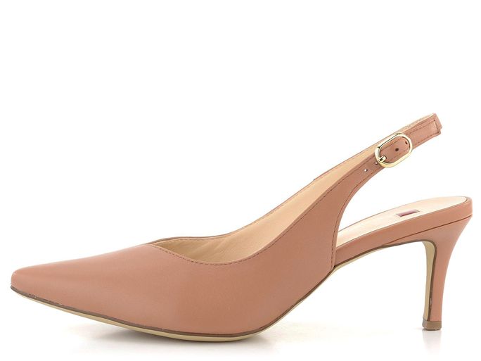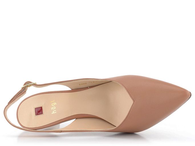 Luxusní dámské kožené lodičky s volnou patou a na jehlovém podpatku v nevšední, mandlově hnědé barvě.