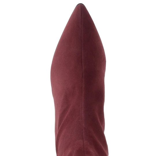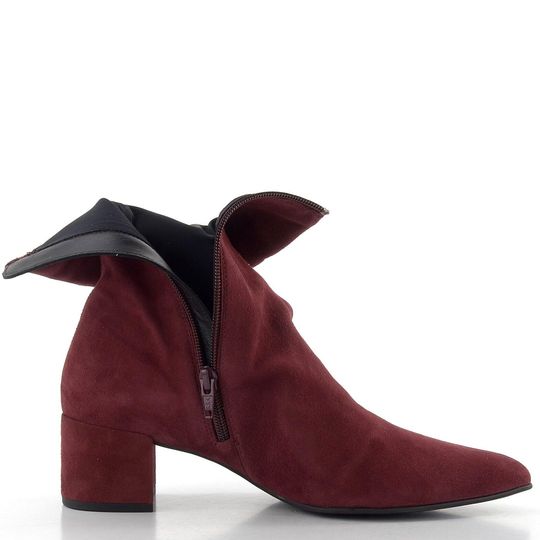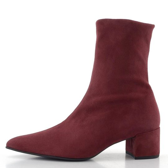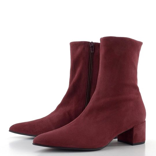 Dámský vínový kotník ze semišové kůže, s elegantní úzkou špičkou a pohodlným stabilním podpatkem.