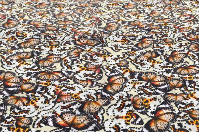 Luxusní hedvábný šátek s barevným potiskem motýlů.