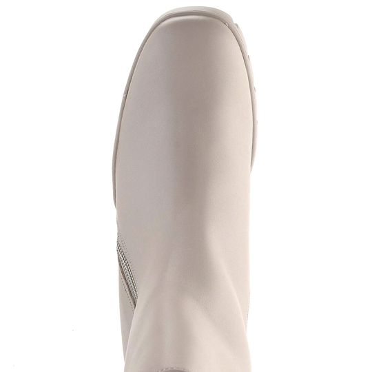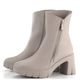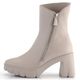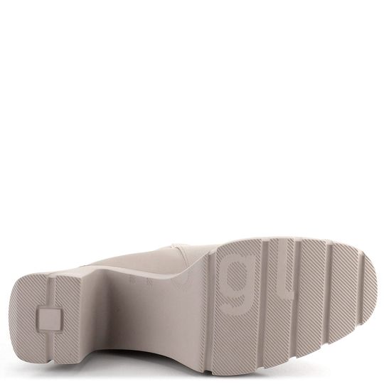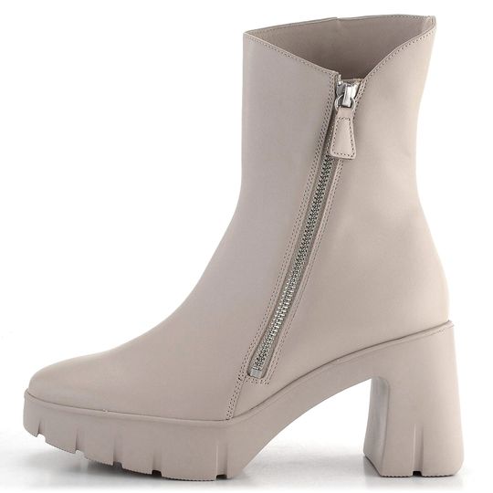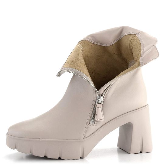 Elegantní a módní dámský kotník na platformě s podpatkem od značky Högl je ideální volbou pro podzimní a zimní sezónu. Boty jsou vyrobeny z hladké prémiové kůže v světlém béžovém odstínu se šedým nádechem, což jim dodává sofistikovaný vzhled. Hranatější špička a kovové detaily ve stříbrné barvě podtrhují jejich moderní design.