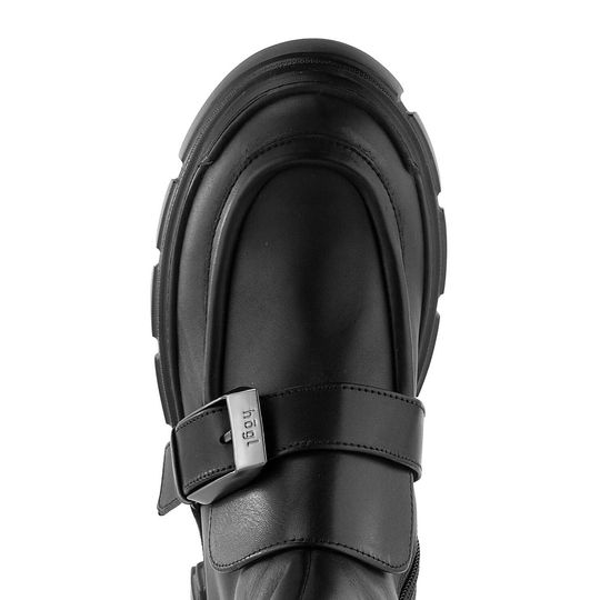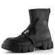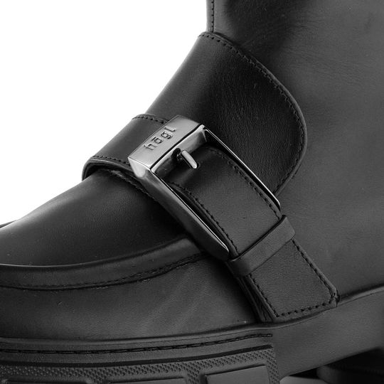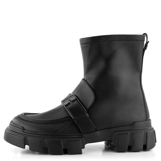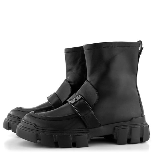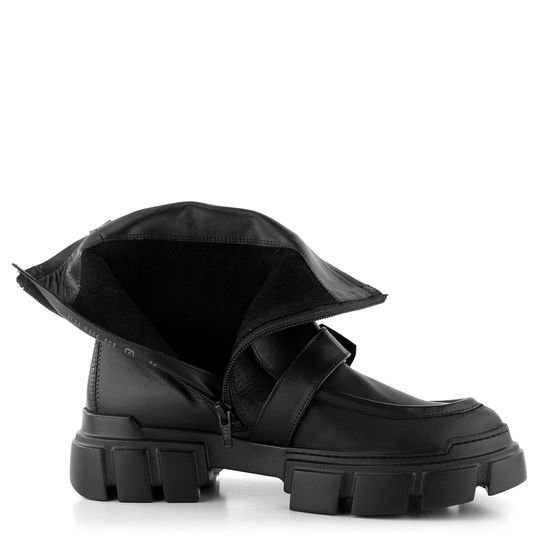 Dámský stylový kotník z hladké kůže, se zajímavě řešeným nártem a robustní podešví.