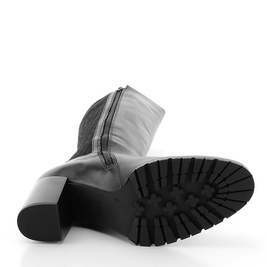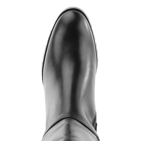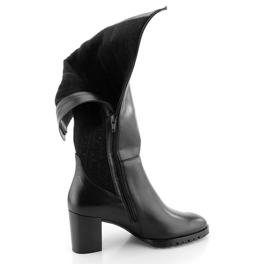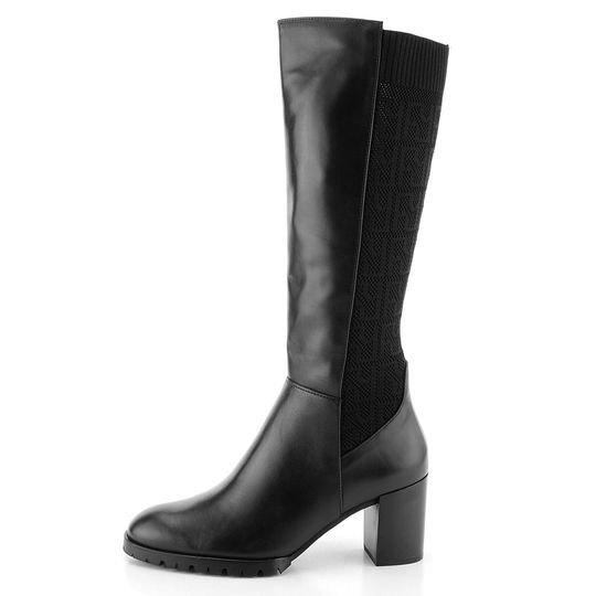Luxusní dámské kozačky z prémiové, hladké kůže s mírně pružným úpletovým materiálem v lýtkové části.