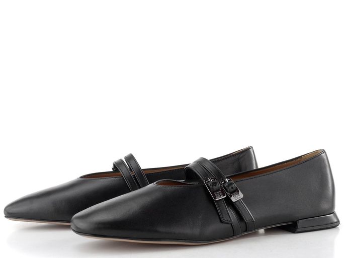 Dva nártové pásečky s délkovou regulací a všitou pruženkou poskytují dokonalé přizpůsobení, a to i bez podšívky. Měkká kožená stélka a široký, nízký podpatek potažený kůží zaručují komfort při nošení po celý den. Syntetická podešev bez vzorku dodává elegantní vzhled, který se hodí jak do kanceláře, tak na formální příležitosti. Nechte se okouzlit kvalitou a stylem, které vám tyto baleríny přinesou.