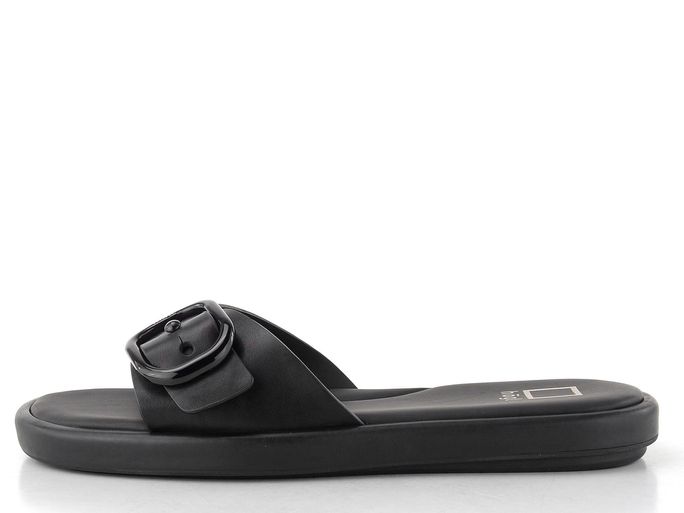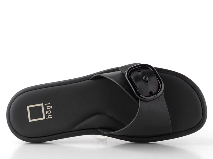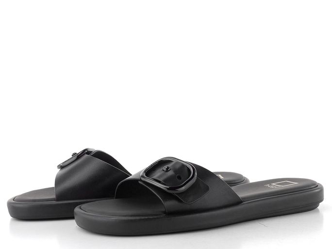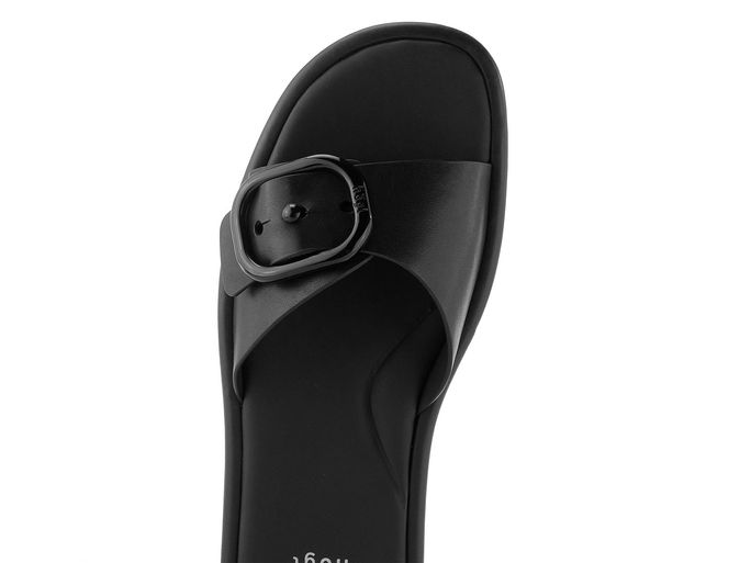 Dámské módní, celokožené pantofle v černém provedení s nastavitelným páskem.