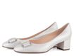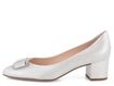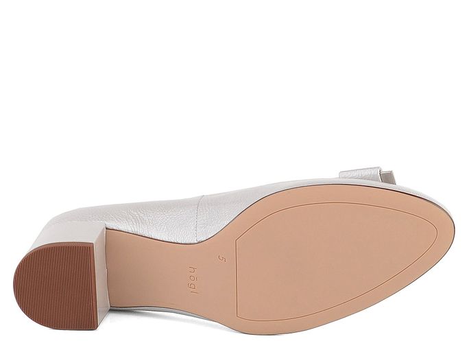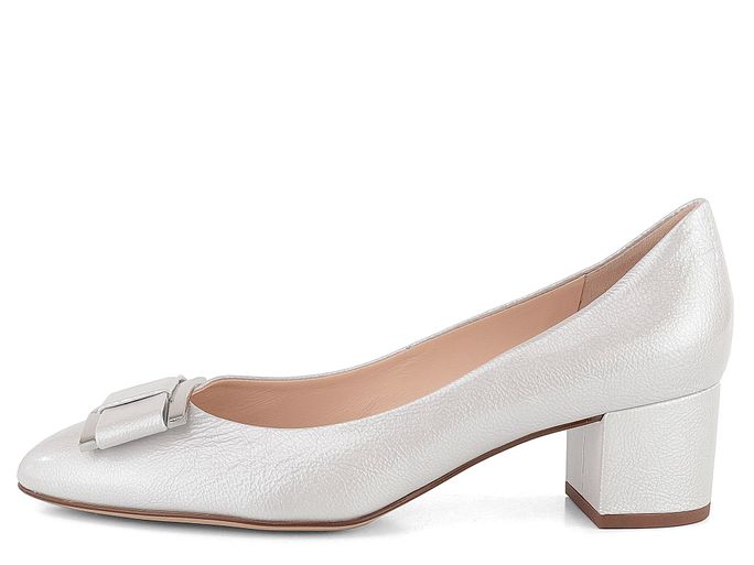 Dámské luxusní lodičky z mačkané kůže v jemném světle šedém tónu a na širokém pohodlném podpatku.