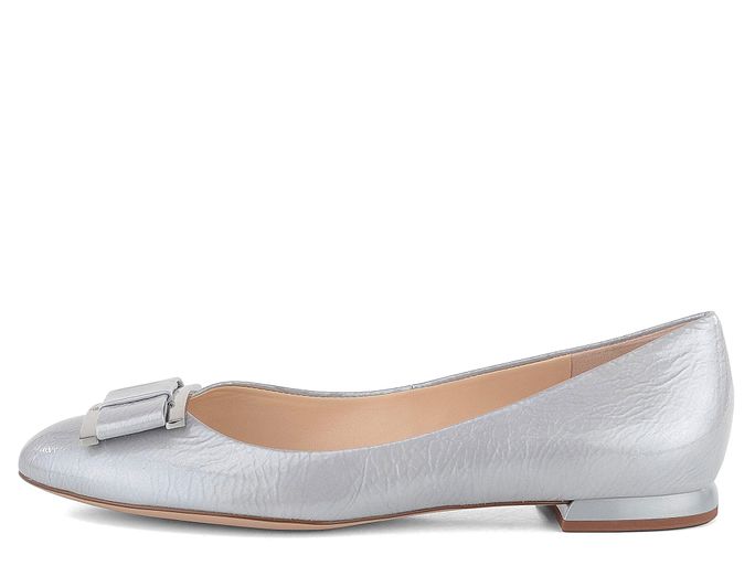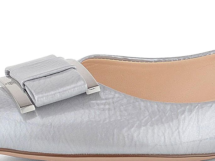 Luxusní dámské baleríny z mačkané lakované kůže a v krásném odstínu kovově šedé barvy.