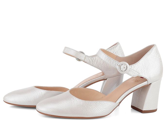 Módní dámské lodičky z křeslakové kůže v jemném, světle šedém tónu a s potaženým podpatkem a celokoženým vnitřkem.