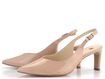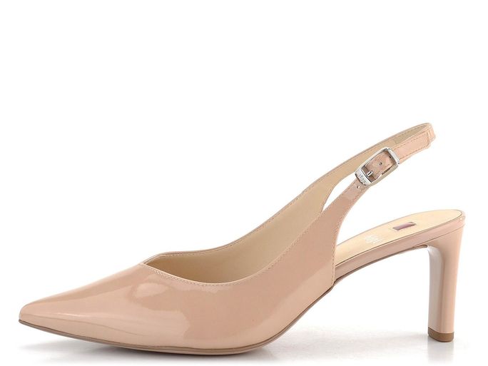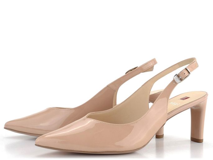 Luxusní dámské lodičky s volnou patou od značky Högl jsou ideální volbou pro jarní a letní sezónu. Díky elegantnímu střihu do špičky a lakované hladké kůži ve stylovém béžovém odstínu (nude) dodají vašemu outfitu sofistikovaný vzhled. Patní pásek s délkovou regulací a všitou pruženkou zajišťuje pohodlné nošení. Lodičky mají celokoženou podšívku a měkkou stélku, která poskytuje maximální komfort. Zajímavý módní podpatek o výšce 7 cm v plochém provedení dodává botám moderní šmrnc. Tyto lodičky jsou perfektní volbou do kanceláře, na formální příležitosti i na lehkou procházku městem.