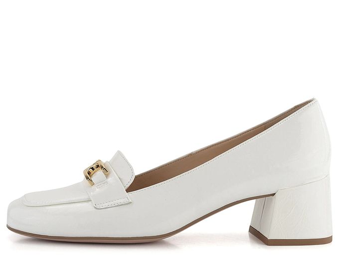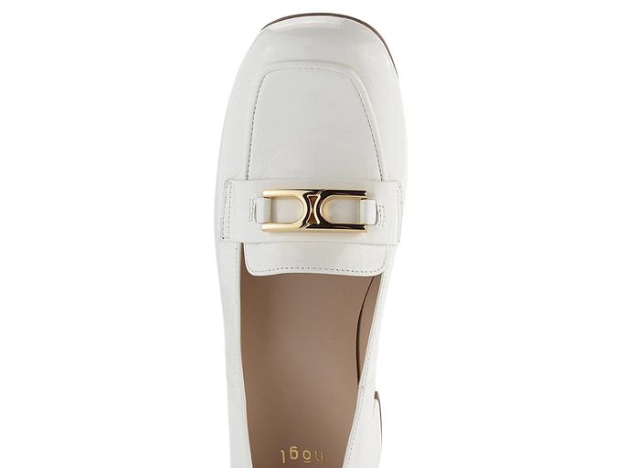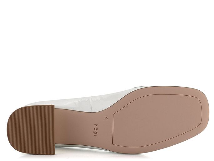Elegantní dámské lodičky s módní karé špičkou od značky Högl jsou ideální volbou pro každou ženu, která hledá styl a komfort. Svršek z lakované mačkané kůže v odražené bílé barvě dodává botám luxusní vzhled, zatímco pásek s kovovou sponou ve zlatém odstínu na špičce přidává na eleganci. Vnitřní celokožená podšívka a příjemně měkká stélka zajišťují maximální pohodlí při nošení. Díky širokému potaženému podpatku o výšce 5,3 cm jsou tyto lodičky nejen stylové, ale i pohodlné pro každodenní nošení. Hladká podešev a lepený výrobní způsob přispívají k dlouhé životnosti obuvi. Upozorňujeme, že při nošení může dojít k přirozenému zvrásnění materiálu, což je typická vlastnost této kvalitní kůže.