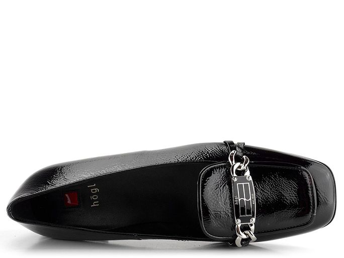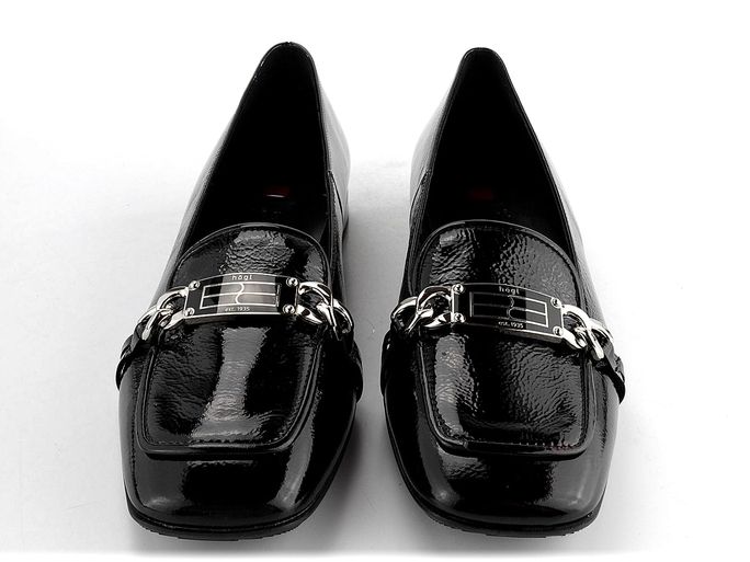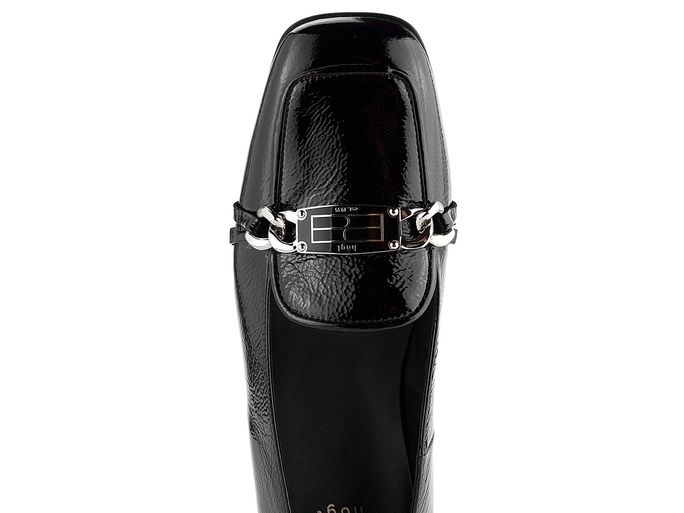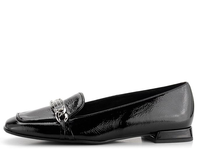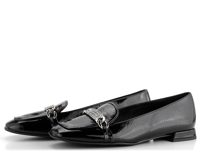 Dámské lakované mokasínky v jednoduchém elegantním střihu s decentně zdobeným nártem.