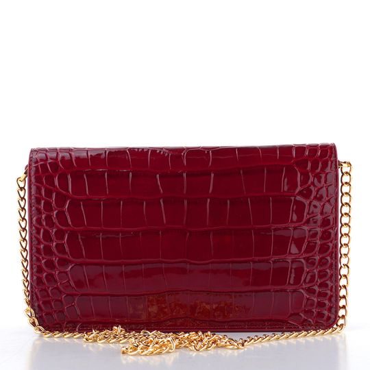 Luxusní dámské psaníčko z lakované kroko kůže ve vínově červeném odstínu.