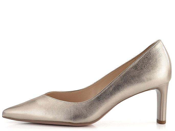Luxusní a elegantní lodičky značky Högl vynikají svým metalickým bronzovým odstínem, který se blíží platinové barvě. Tyto lodičky jsou ideální pro jarní a letní sezónu a díky svému módnímu špičatému střihu dodají vašemu outfitu sofistikovaný vzhled. Svršek je vyroben z kvalitní metalické kůže, která je nejen krásná, ale i odolná.