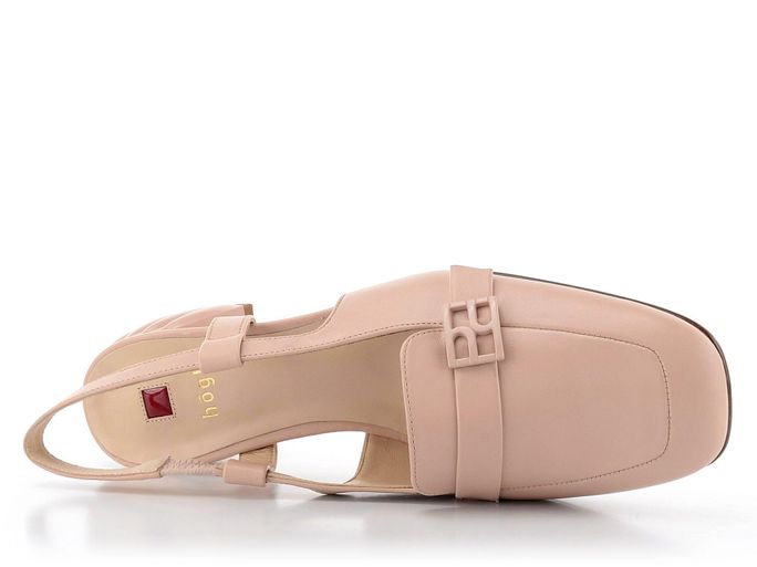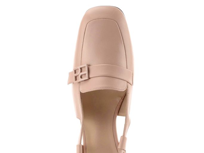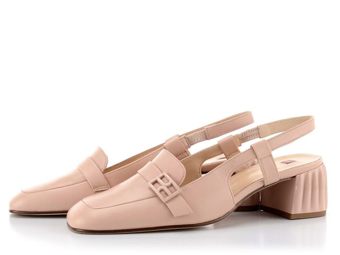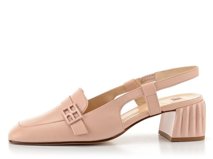 Dámské lodičky v tělovém odstínu s netradičním podpatkem a mokasínovou špičkou budou vaší módní obuví.
