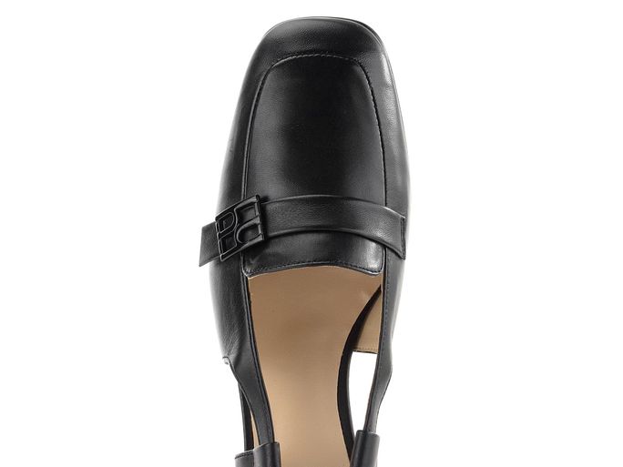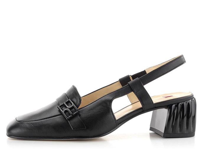 Dámské lodičky v černé barvě s netradičním podpatkem a mokasínovou špičkou budou vaší módní obuví.