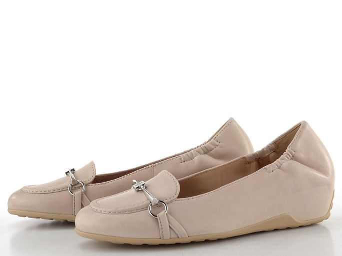 Dámské pohodlné lodičky z hladké kůže v béžové barvě, na flexibilní podešvi s klínkem.
