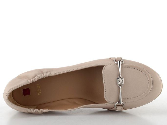 Komfortní dámské lodičky na klínu od luxusní značky Högl jsou ideální volbou pro jarní a letní dny. Tyto elegantní baleríny v béžové barvě z prémiové hladké kůže přinášejí spojení stylu a pohodlí. Jednoduchý střih s kulatou špičkou a ozdobná spona ve stříbrné barvě dodávají šmrnc každému outfitu. Celokožená podšívka a měkká kožená stélka zajistí maximální komfort po celý den. Ohebná podešev s malým klínkem potaženým kůží přispívá k stabilitě a podpoře. Tyto lodičky jsou perfektní volbou pro formální příležitosti či každodenní nošení, ať už do kanceláře nebo na procházku městem.