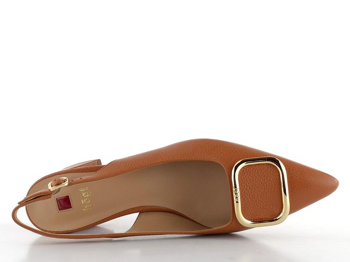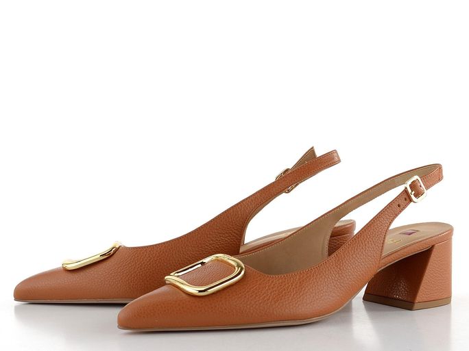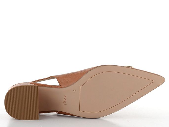 Dámské lodičky s volnou patou od značky Högl, které zaujmou elegantním špičatým střihem a koňakově hnědou barvou, jsou perfektní volbou pro ženy, které hledají stylovou a pohodlnou obuv. Svršek z kvalitní strukturované kůže a celokožená podšívka zajišťují vysoký komfort při nošení. Výrazná pokovená spona ve zlaté barvě dodává botám nádech luxusu. Díky širokému potaženému podpatku o výšce 5,5 cm a měkké stélce budete mít jistotu pohodlí i po celý den. Patní pásek s možností délkové regulace a všitou pruženkou přispívá k dokonalému přizpůsobení. Tyto lodičky jsou ideální pro každodenní nošení i formální příležitosti.