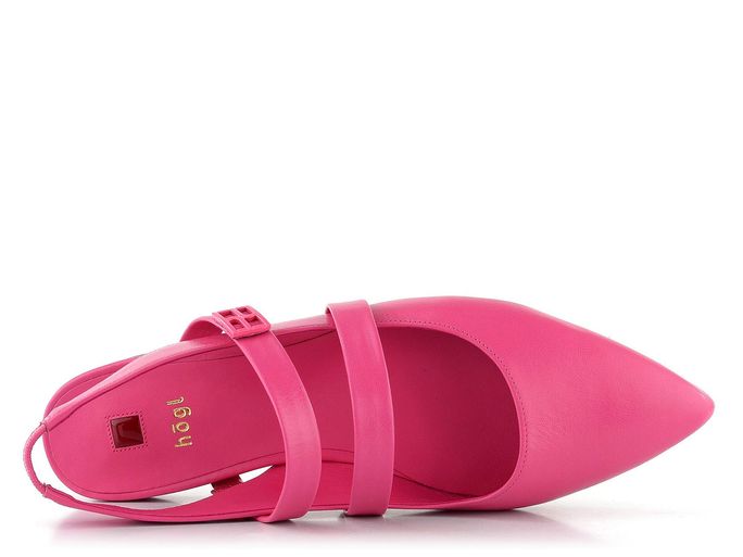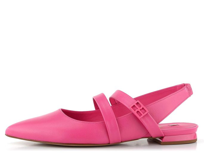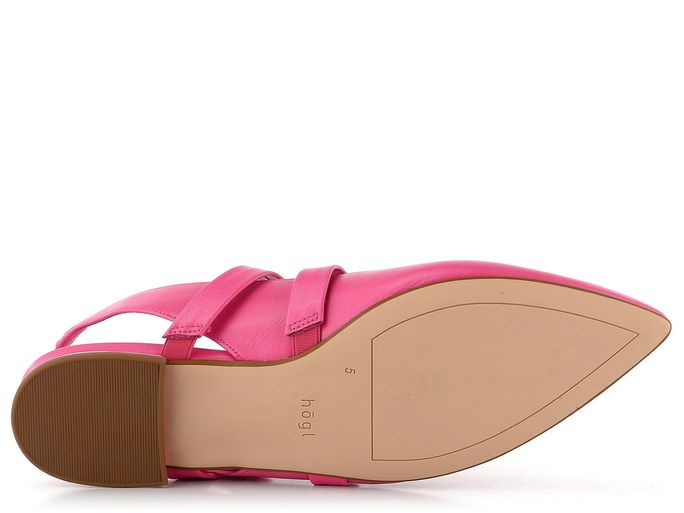 Dámské baleríny s elegantní špičkou a volnou patou vyrobené z hladké kůže v krásně tmavě růžové barvě.