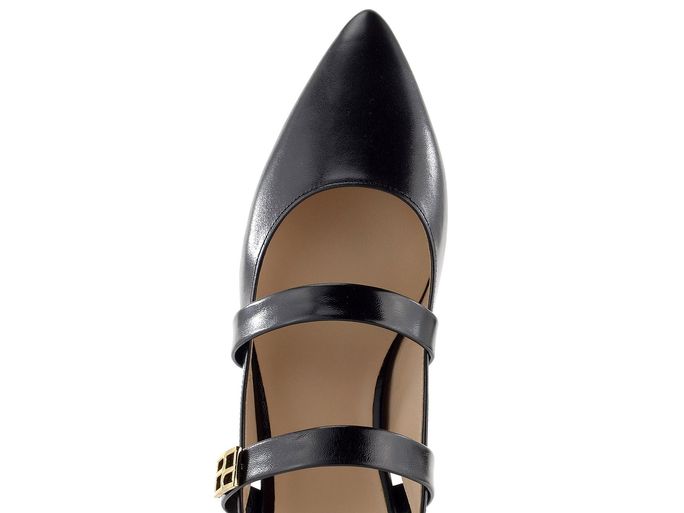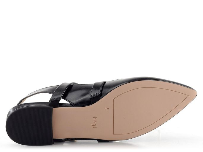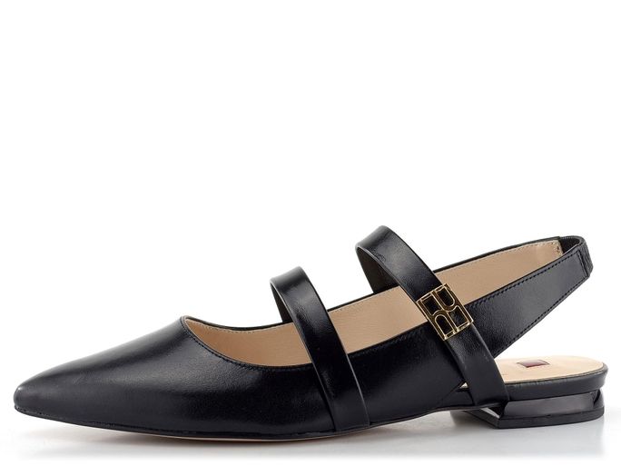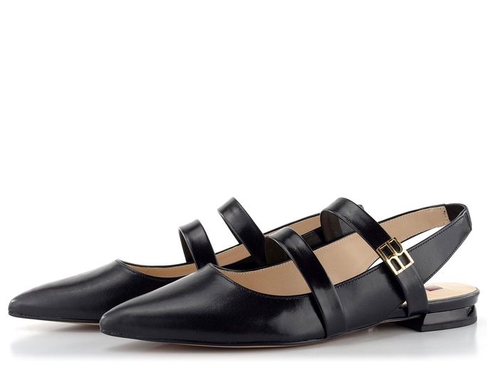 Dámské baleríny s elegantní špičkou a volnou patou vyrobené z hladké kůže v černé barvě.