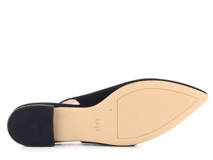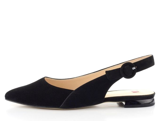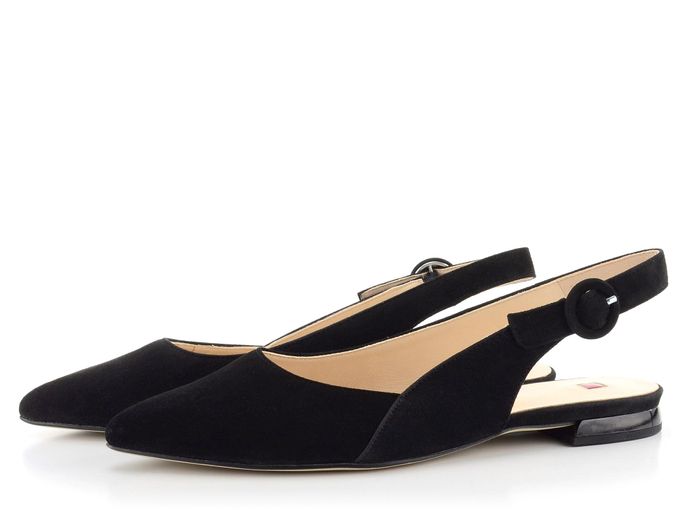 Dámské elegantní baleríny s volnou patou vyrobené ze semišové kůže v černé barvě.