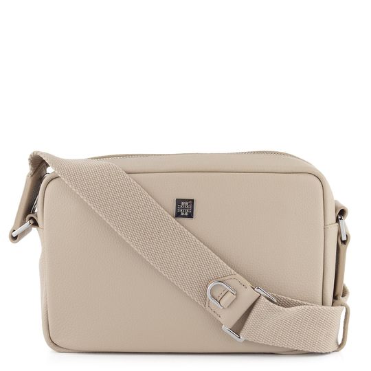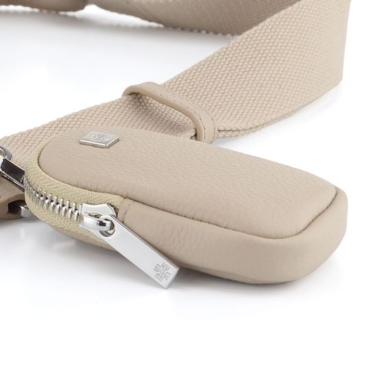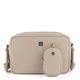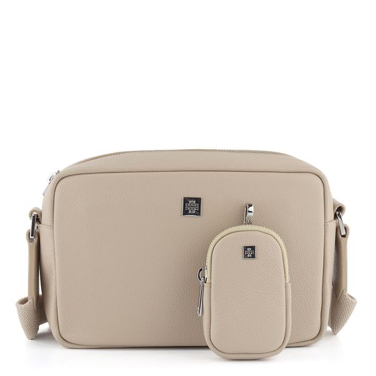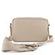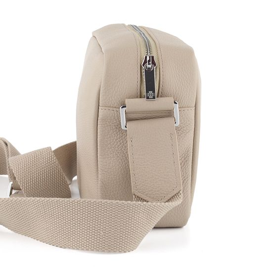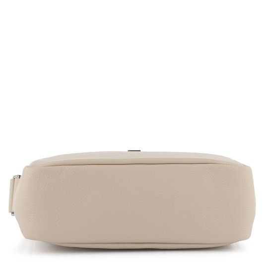 Luxusní malá dámská kabelka ze strukturované kůže ve světlé, šedobéžové barvě a jednoduchém elegantním střihu.