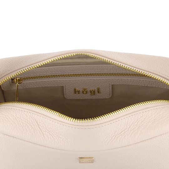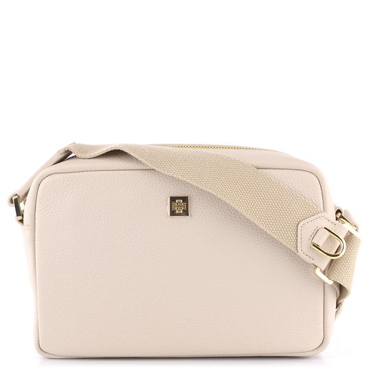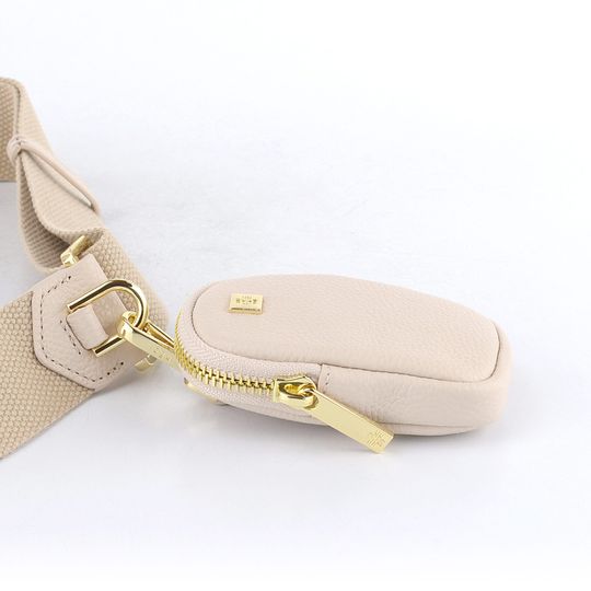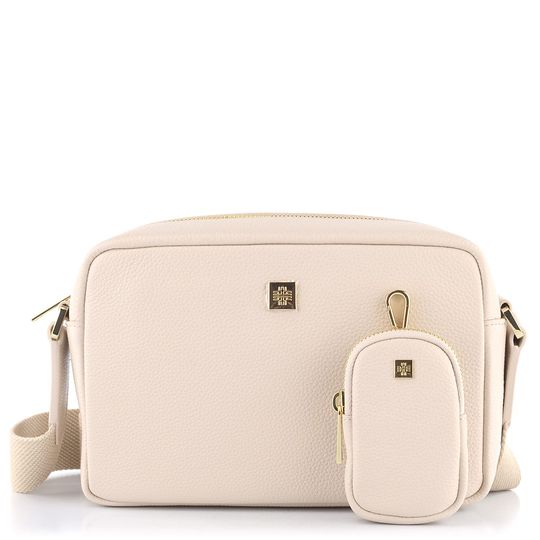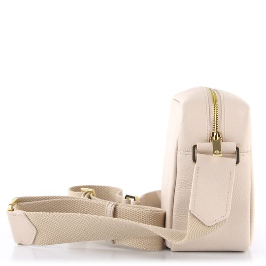 Luxusní malá dámská crossbody kabelka ve světlé béžové barvě a v jednoduchém elegantním střihu.
