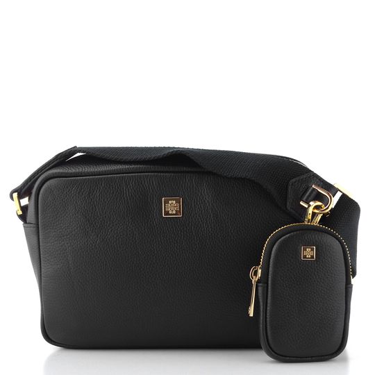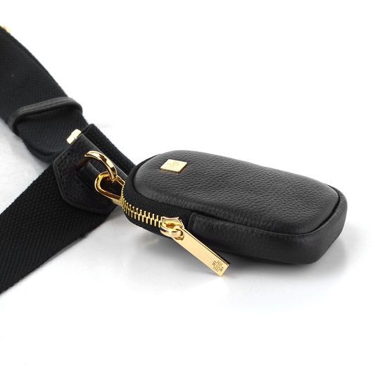Na přední straně se nachází kovové logo značky a zlaté kování, které podtrhuje její luxusní charakter. Součástí kabelky je praktická zipová etuje s karabinkou, kterou můžete připnout na popruh. Textilní ramenní popruh s délkovou regulací (110 - 150 cm) zajišťuje pohodlné nošení.