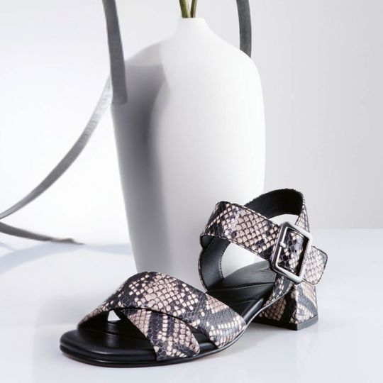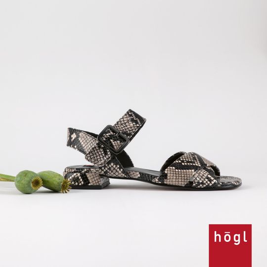 Exkluzivní dámské sandály na podpatku od značky Högl představují ideální volbu pro jarní a letní dny. S páskovým střihem a kulatější špičkou z lakované kůže s hadinkovou strukturou dodají vašemu outfitu šmrnc. Vzor hadí kůže v béžové, šedobéžové, šedé a černé barvě zajistí, že budete vždy v trendu.