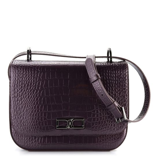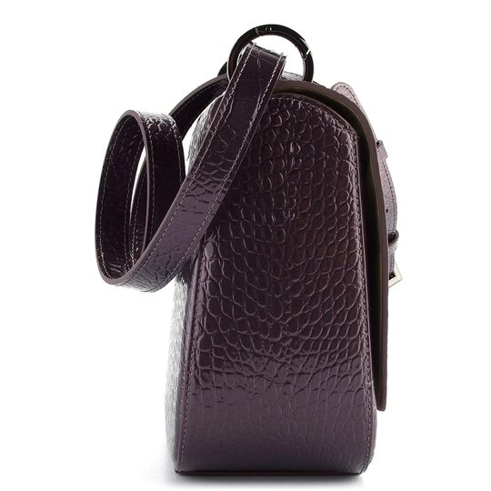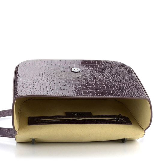 Luxusní dámská kabelka z lakované hadinky v kovově fialové barvě.
