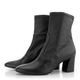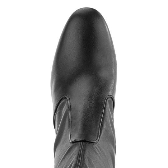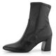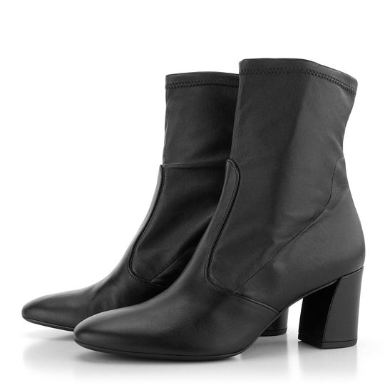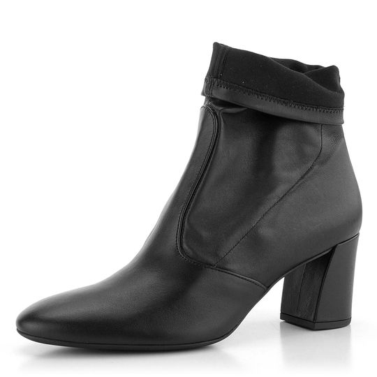 Dámský stylový kotník z černé hladké kůže, s elastickým kotníkovým límcem a tvarovaným podpatkem.