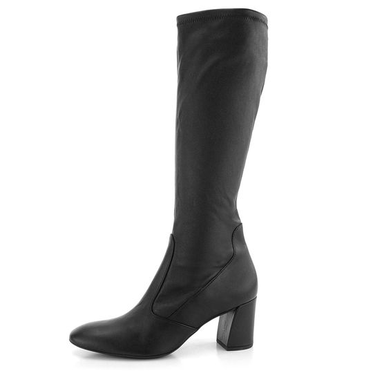Luxusní dámské černé kozačky z prémiové, hladké kůže s elastickým lýtkem.