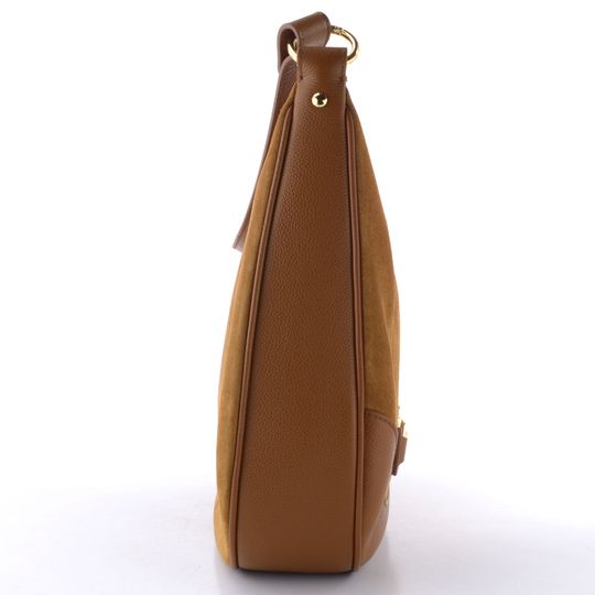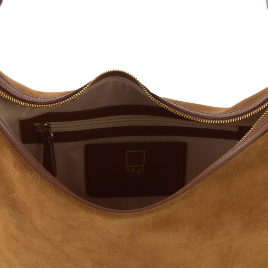 Luxusní dámská kožená kabelka od značky Högl je ideálním doplňkem pro každou příležitost. Její elegantní design v trendy střihu gondola a světle hnědá (velbloudí hnědá) barva dodávají šarm a styl. Kabelka je vyrobena z kvalitní kombinace strukturované a semišové kůže, což zaručuje nejen vzhled, ale i trvanlivost.