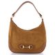 Luxusní dámská kožená kabelka přes rameno ve tvaru gondoly s kovovou ozdobou.
